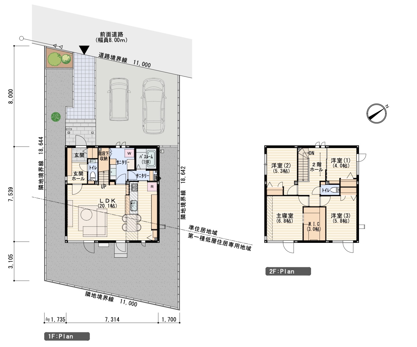 ※プラン図は図面を基に描いておりますので、実際と多少異なる場合があります。家具・小物・外構は価格に含まれます。洗濯機・冷蔵庫・車は価格に含まれません。