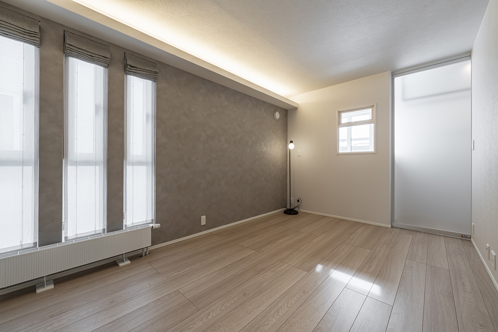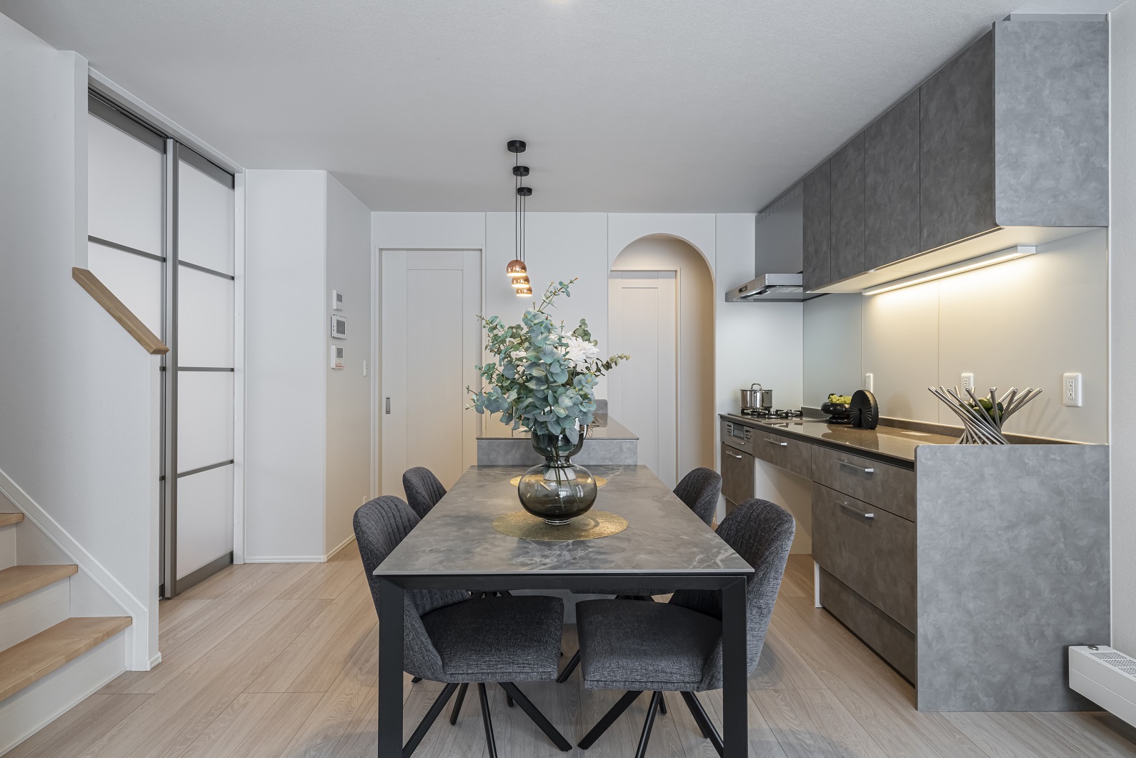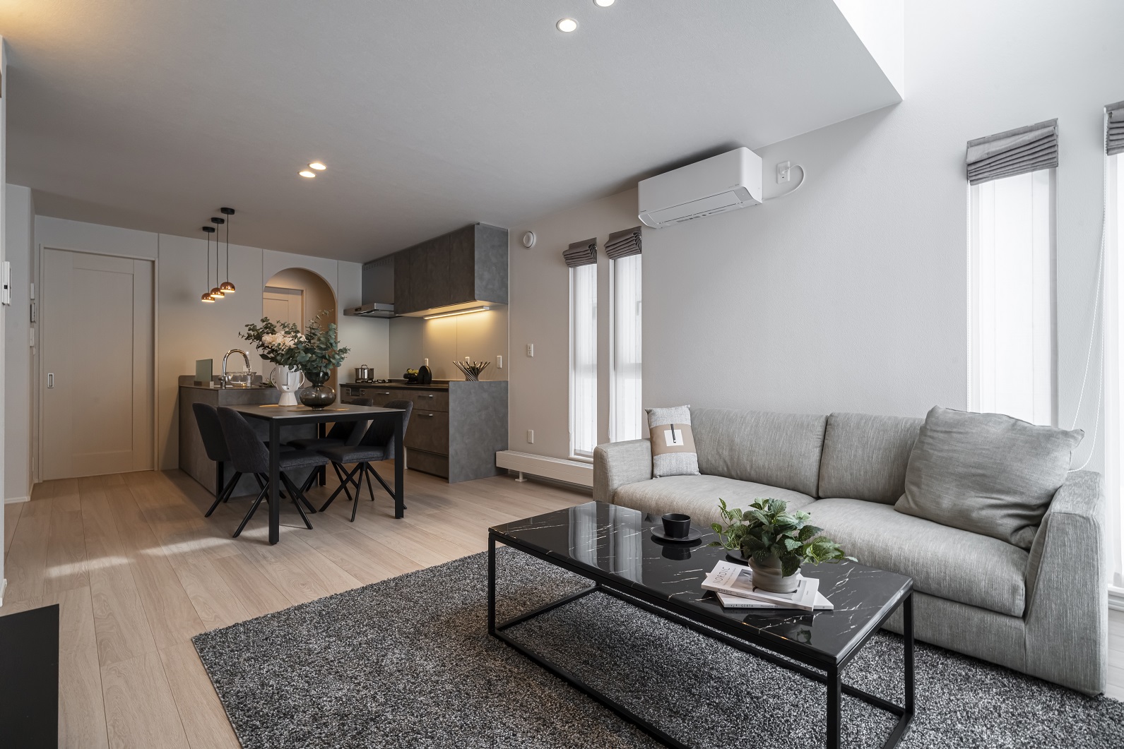 グレイッシュカラーでまとめた15.6帖のLDK(2025年2月撮影)